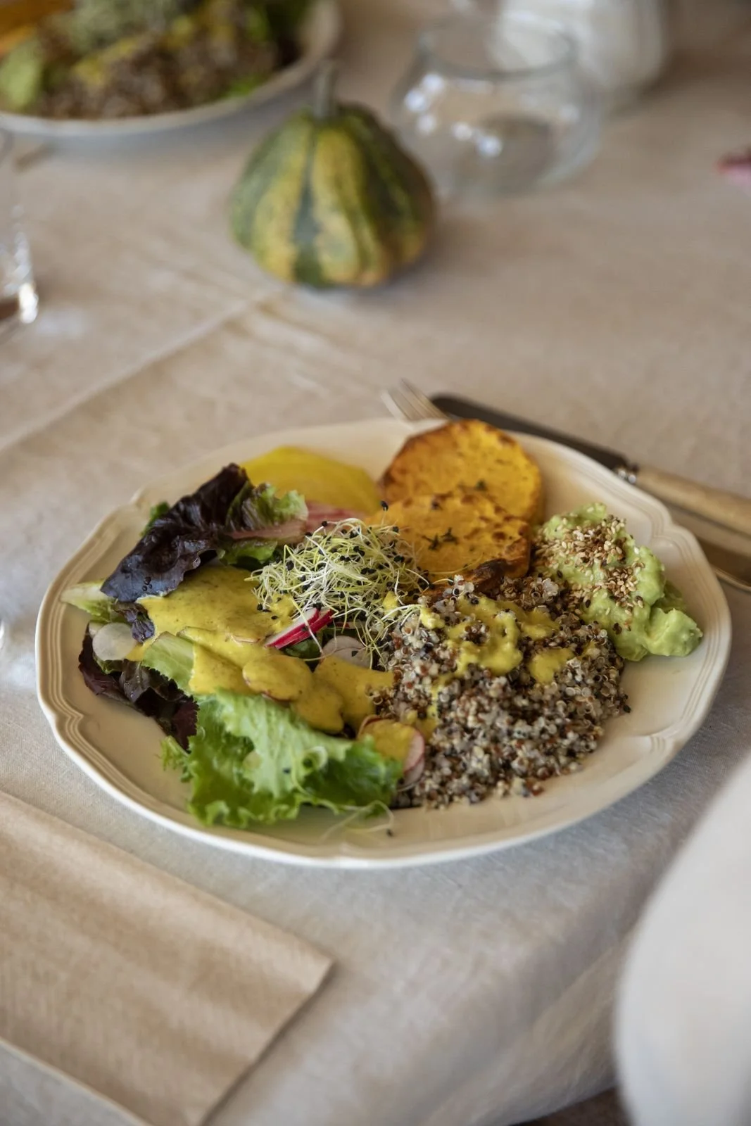 « J'étais à la première édition qui m'avait déjà conquise, et de venir à la seconde édition était une évidence ! Cette seconde expérience, différente, m’a transporté de bonheur ! La retraite Osmose est une rupture avec mon quotidien. Une pose pour soi et uniquement pour soi, entourée de femmes bienveillantes. Cela m'a permis de faire un reset et de reprendre ma vie avec une énergie différente. C'était agréable, léger et ressourçant ! Aujourd’hui, je me sens changée, je me suis imprégnée de cette énergie au point même que mon entourage l’a remarqué. Une merveilleuse aventure au coeur de soi avec des pratiques douces face à un cadre sublime et une merveilleuse cuisine colorée et vivante. Je ne vous remercierai jamais assez pour cette pause, que vous nous proposez, et du bien que cela m’a fait ! »